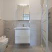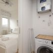 - BAGNO: antibagno con lavatrice e caldaia, a seguire lavandino e specchio, water, bidet, termoarredo e doccia.