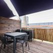 L'appartamento è dotato di una grande zona giorno con un divano letto matrimoniale, una cucina completa, un tavolo, una TV a schermo piatto. Al piano terra è presente anche un bagno completo di doccia e l'accesso ad un terrazzo dove sono presenti delle sdraio ed un tavolo. Al piano superiore è invece presente la camera da letto matrimoniale. Inoltre, l'appartamento dispone di un parcheggio privato. L'intero spazio è molto luminoso ed è dotato di parquet in tutte le stanze al di fuori del bagno.
