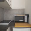 🍳 Cucina attrezzata con piano cottura, microonde, frigorifero, bollitore e macchina del caffè